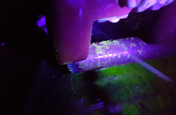 This procedure is used to detect surface and subsurface discontinuities (up to about 1/4 "deep) in ferromagnetic materials. The test may be performed with visible light or ultraviolet light.