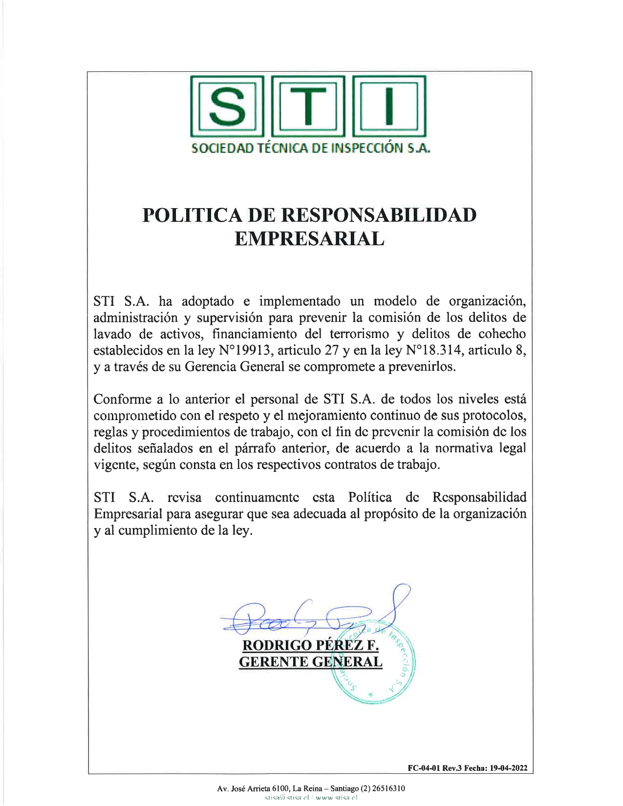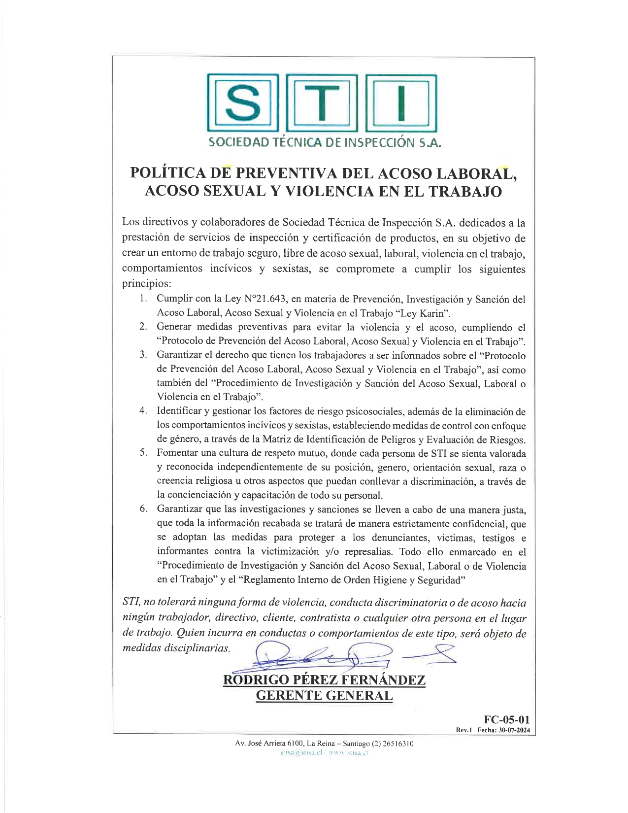 Política Preventiva del Acoso Laboral, Acoso Sexual y Violencia en el Trabajo